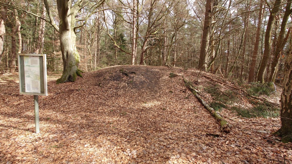 Die Hügel über den Gräbern der älteren Bronzezelt waren häufig sehr hoch. Ein beeindruckendes Beispiel finden Sie an Station 4.