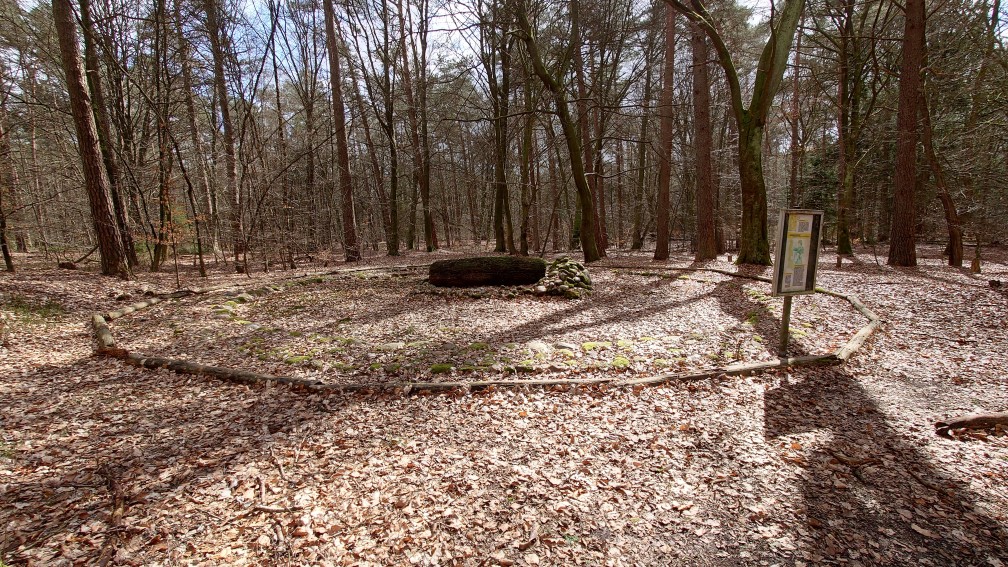 Der Standort des Großsteingrabes und des frühmittelalterlichen Kultplatzes befindet sich bei Station 5. Älterbronzezeitliche Grabhügel finden Sie an Station 3, 4 und 7 bis 10. Den Übergang zur Totenverbrennung können Sie an Station 11 verfolgen. Das Urnengräberfeld der jüngeren Bronze- und Eisen-zeit ist Thema von Station 2. Auf Spuren der neuzeitlichen Lehm- und Mergel-kuhlen treffen Sie an Station 6.